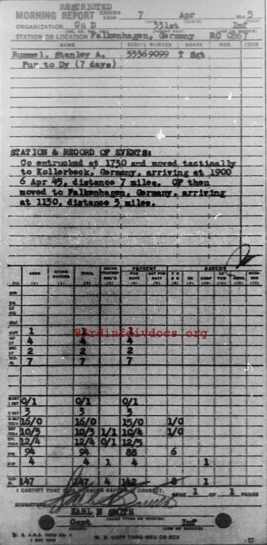 Morning report D/331 for April 7, 1945