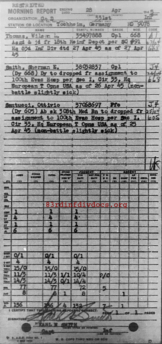 Morning report D/331 for April 28, 1945