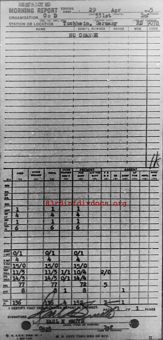 Morning report D/331 for April 29, 1945