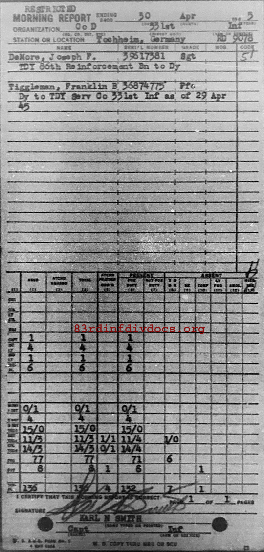 Morning report D/331 for April 30, 1945