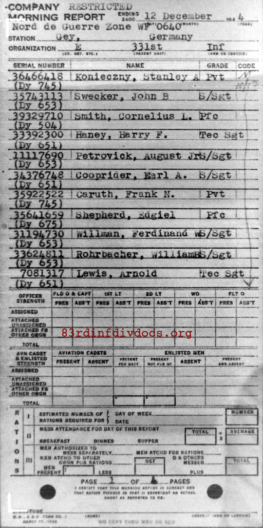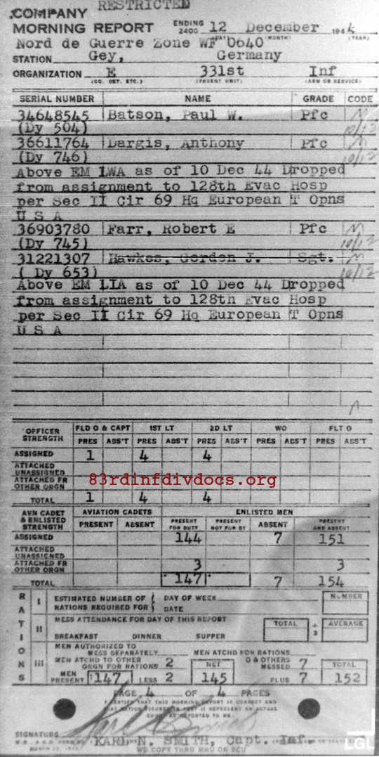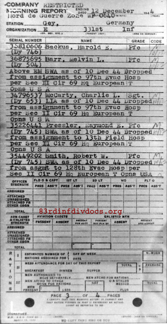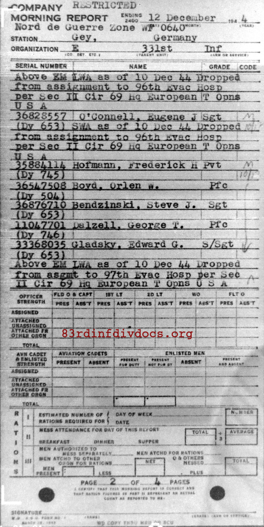 Morning report E/331 for December 12, 1944