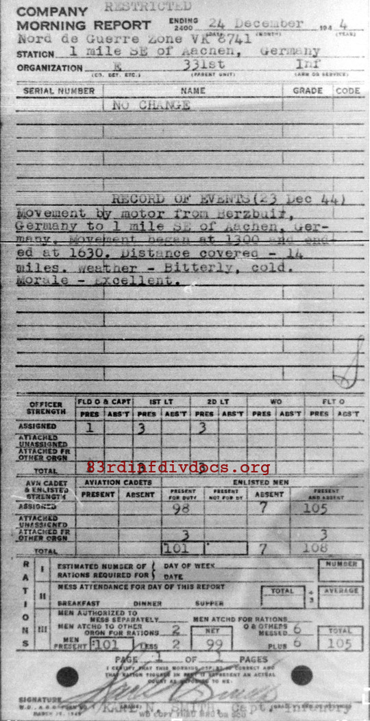 Morning report E/331 for December 24, 1944
