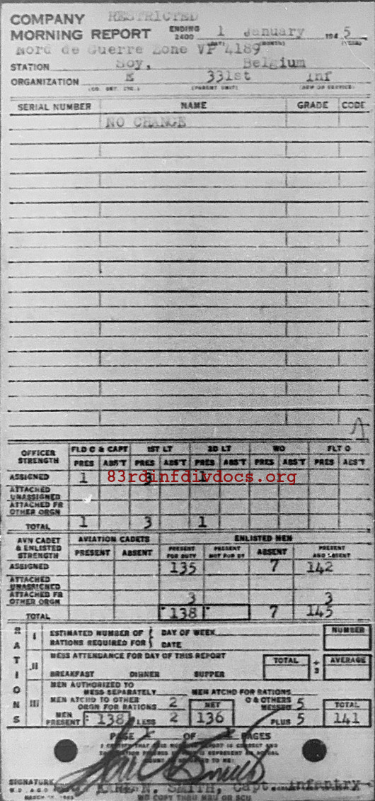 Morning report E/331 for January 1, 1945