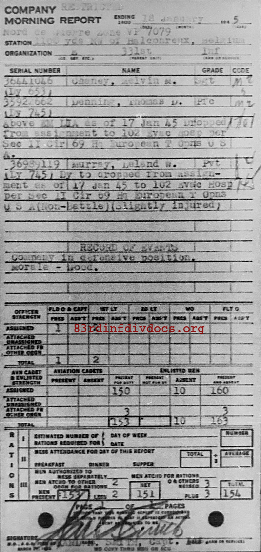 Morning report E/331 for January 18, 1945