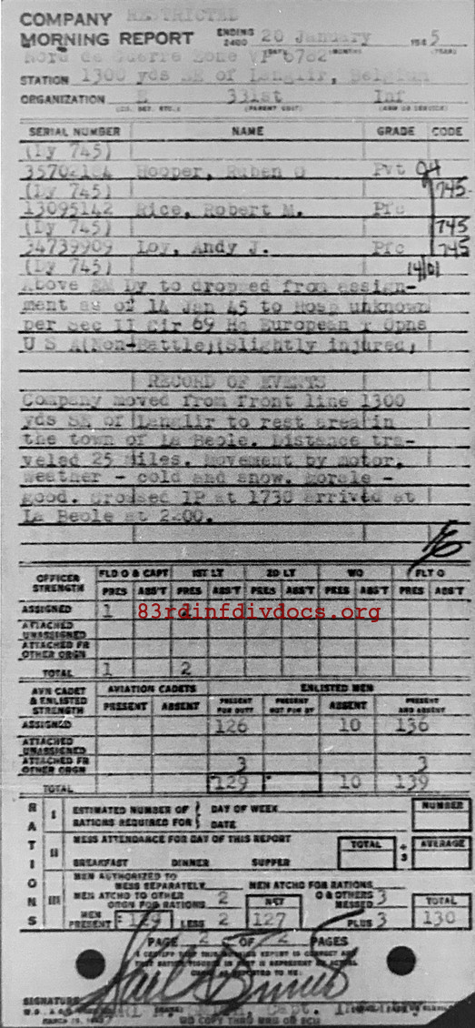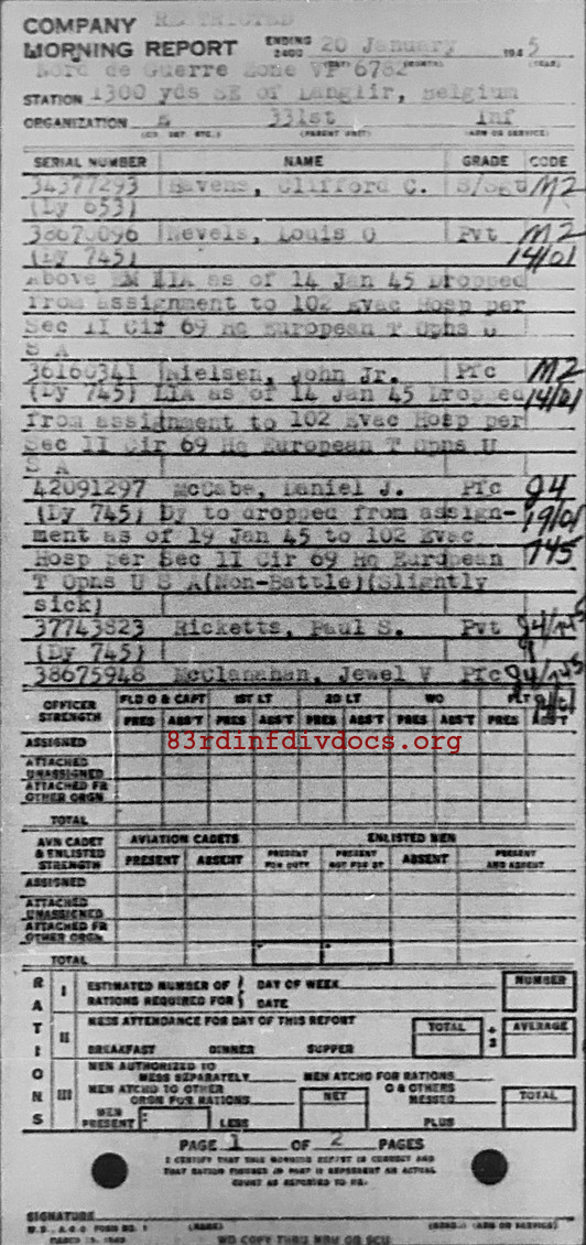 Morning report E/331 for January 20, 1945