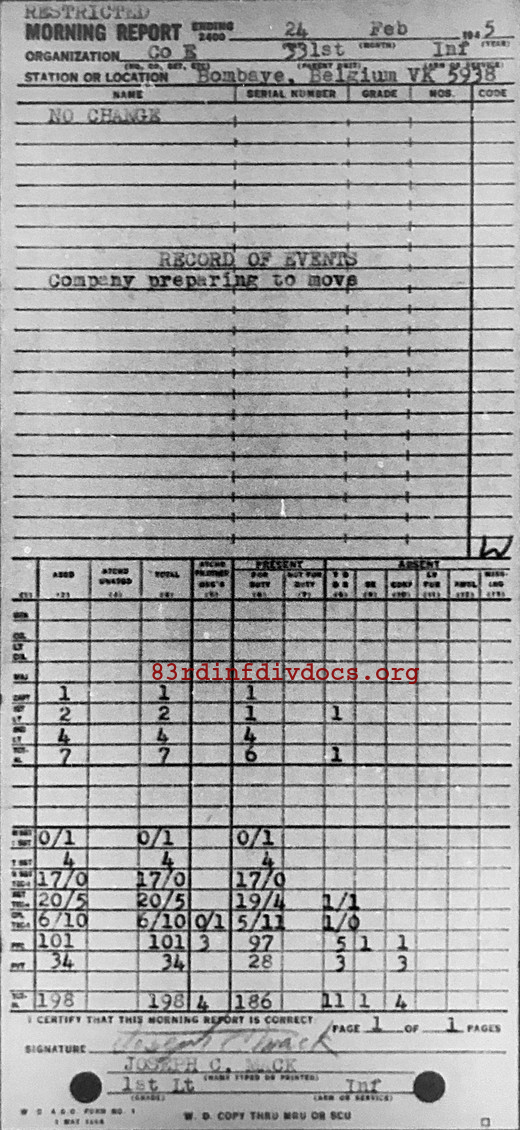 Morning report E/331 for February 24, 1945
