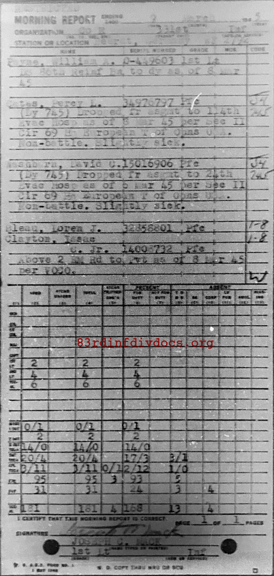 Morning report E/331 for March 9, 1945