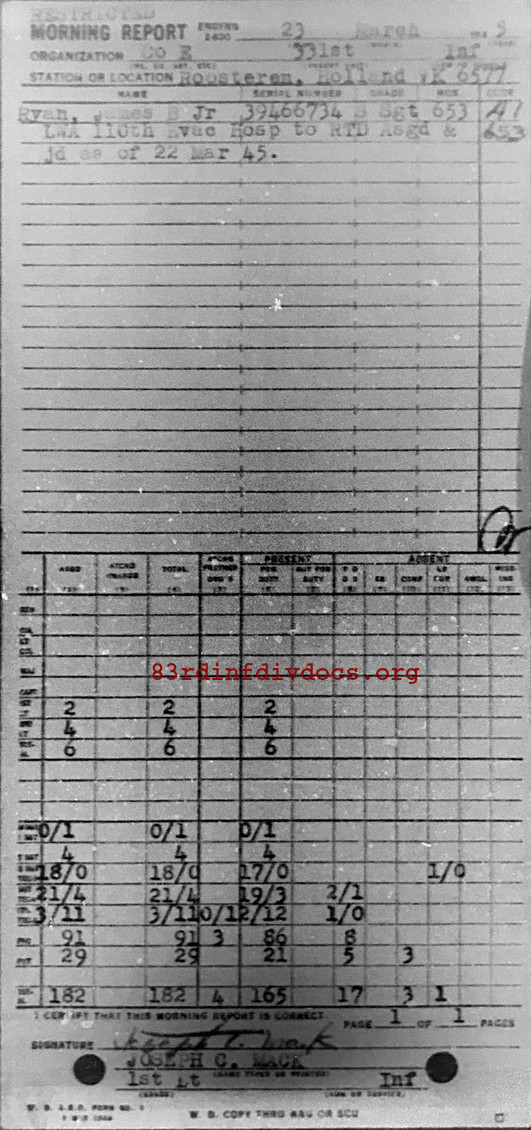 Morning report E/331 for March 23, 1945