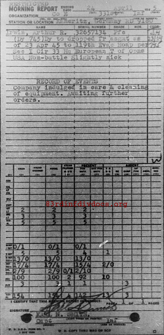 Morning report E/331 for April 24, 1945