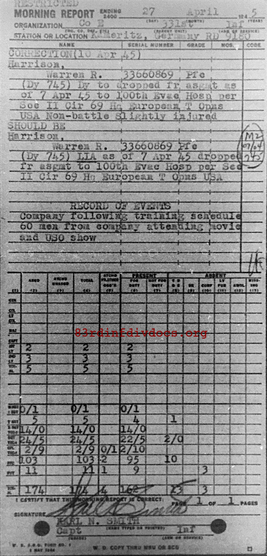 Morning report E/331 for April 27, 1945