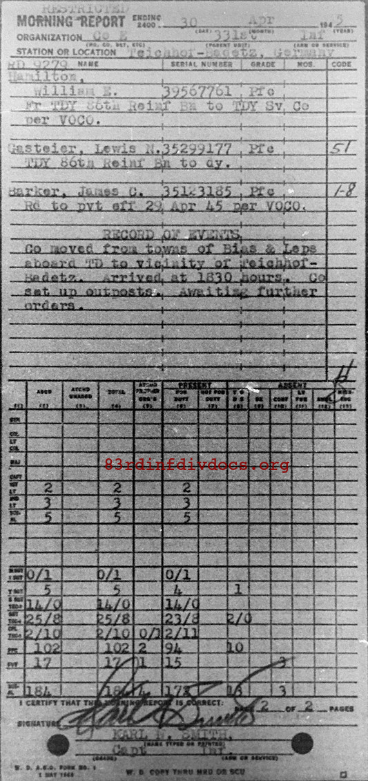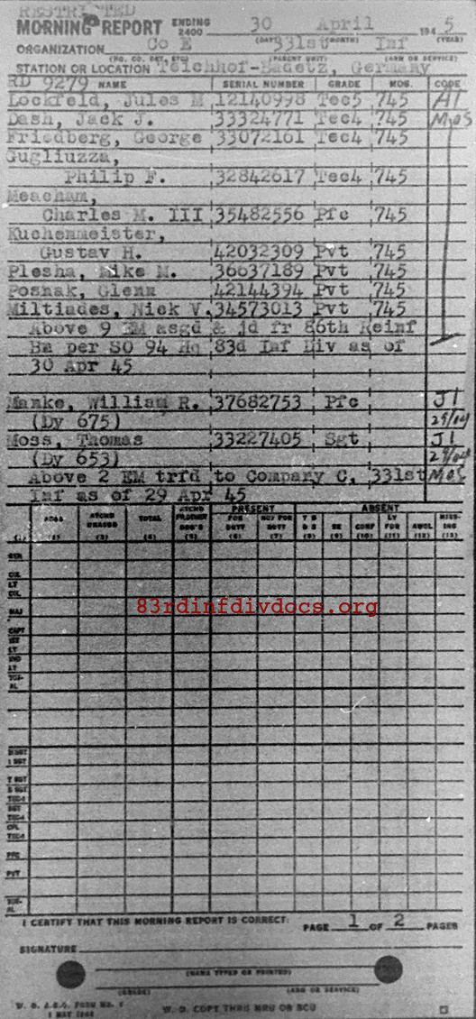 Morning report E/331 for April 30, 1945