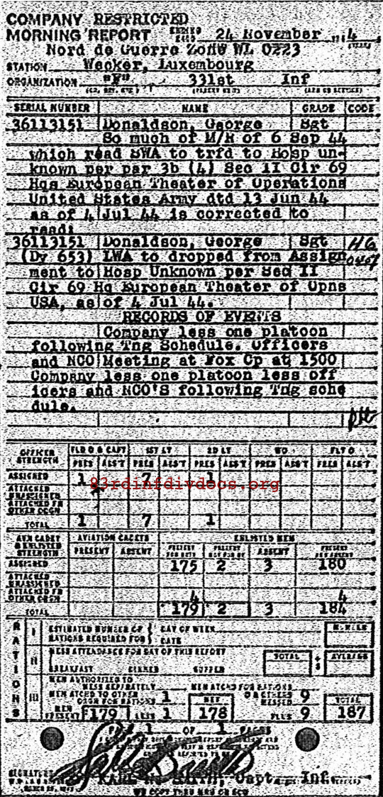 Company less one platoon following Tng schedule. Officers and NCO meeting at Fox Cp at 1500. Company less one platoon less officers and NCO's following Tng schedule.