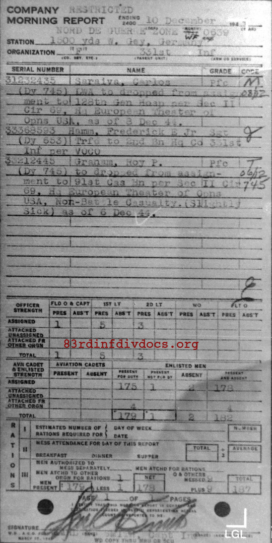 Morning report F/331 for December 10, 1944