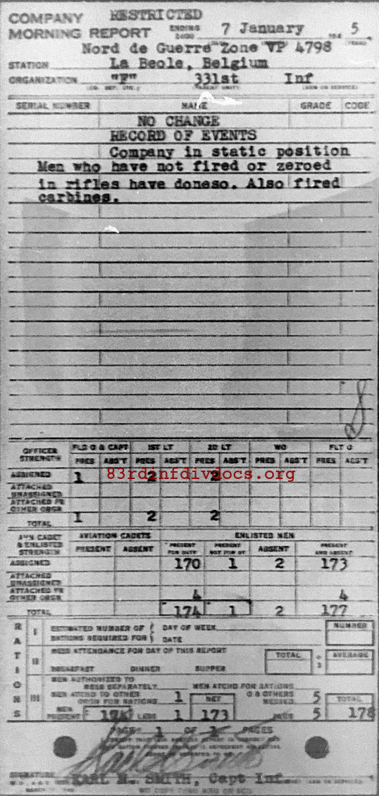 Morning report F/331 for January 7, 1945