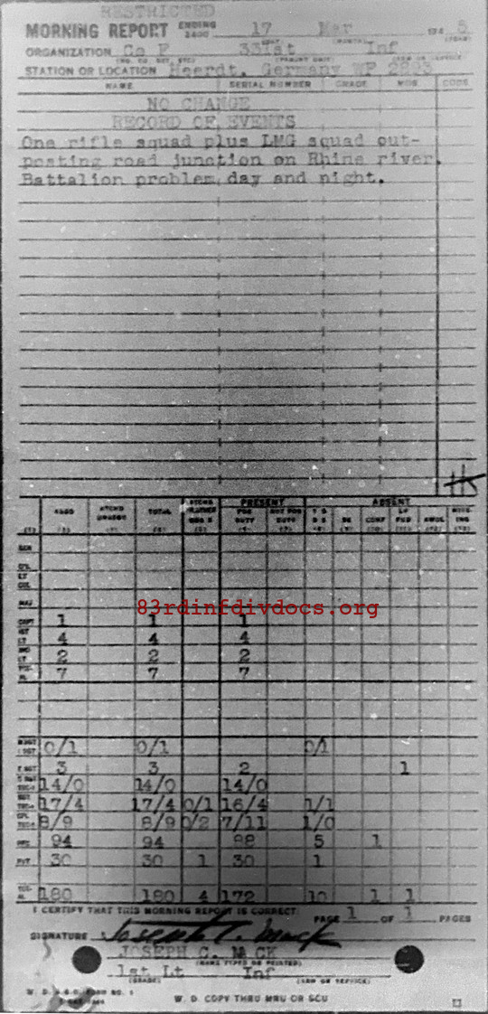 Morning report F/331 for March 17, 1945