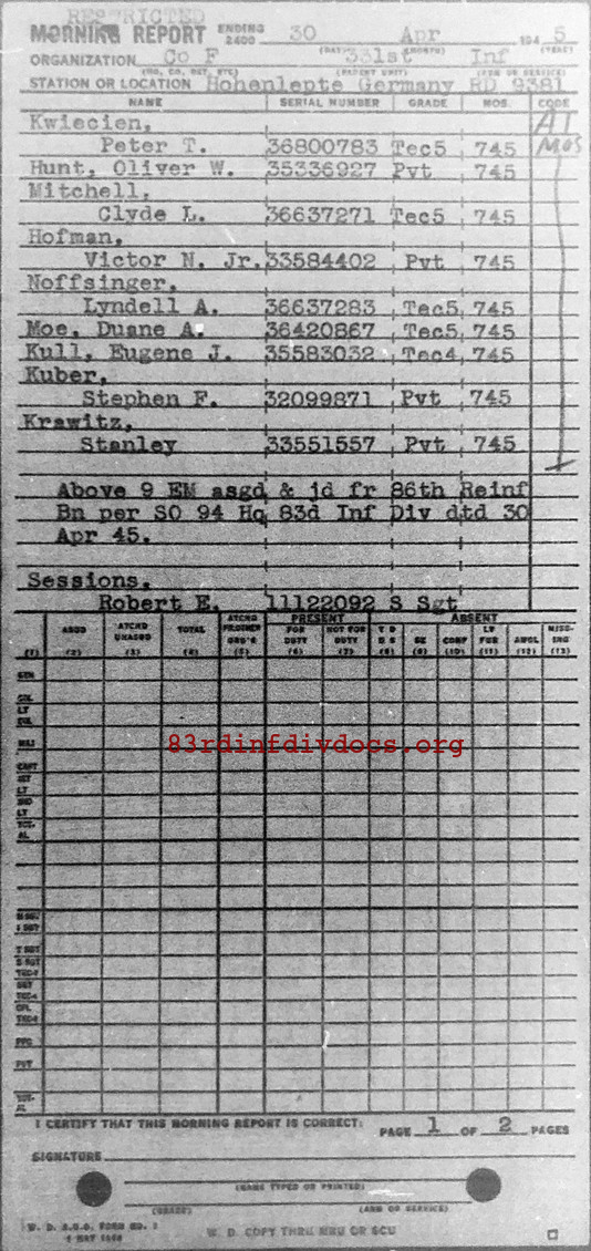Morning report F/331 for April 30, 1945