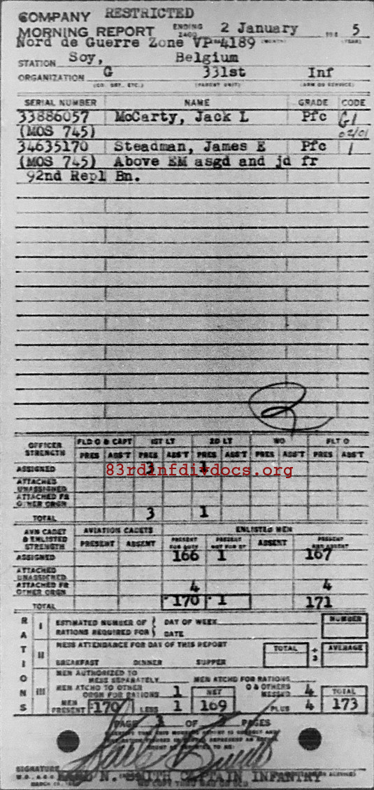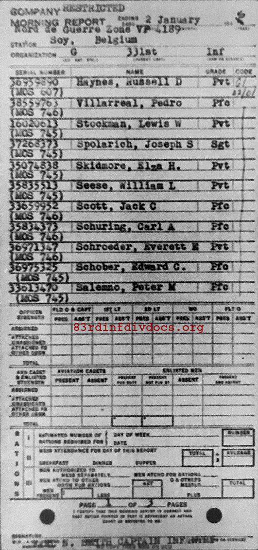 Morning report G/331 for January 2, 1945