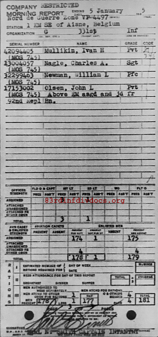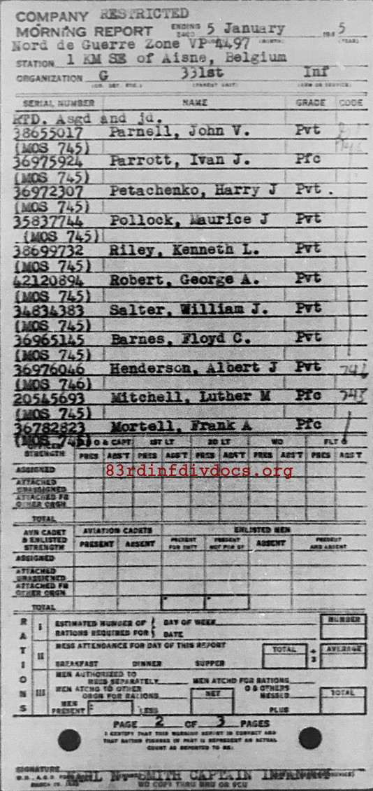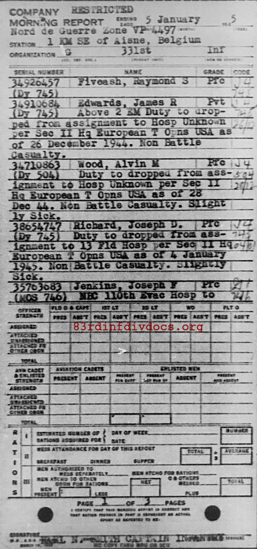 Morning report G/331 for January 5, 1945