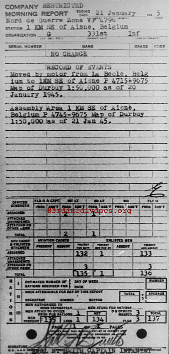 Morning report G/331 for January 21, 1945
