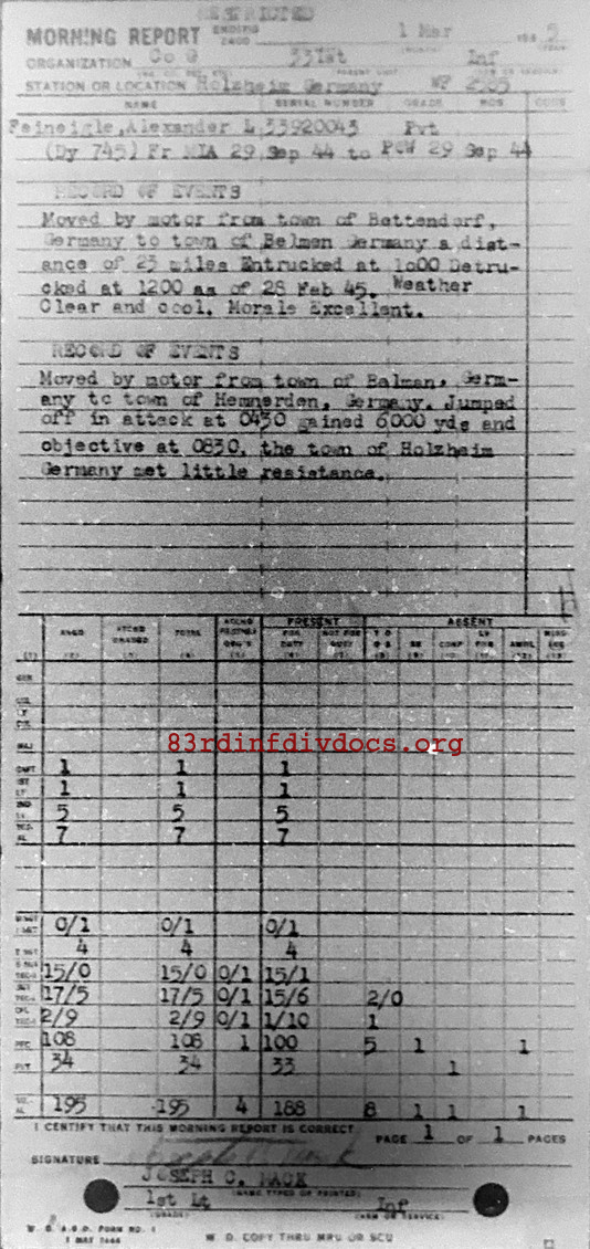 Morning report G/331 for March 1, 1945