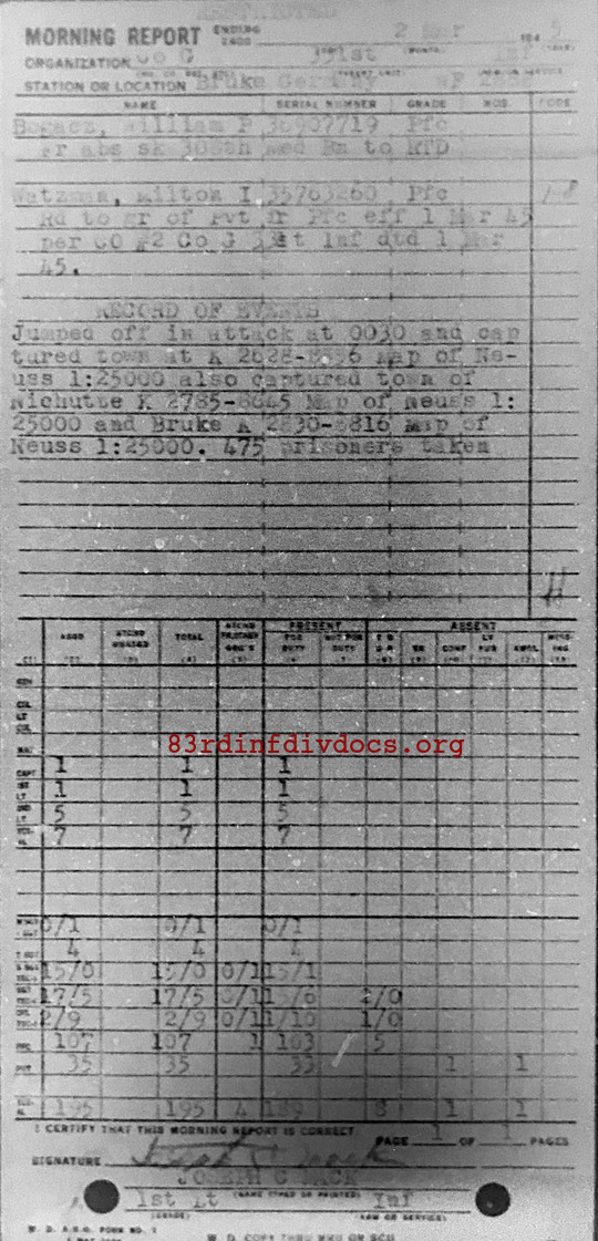Morning report G/331 for March 2, 1945