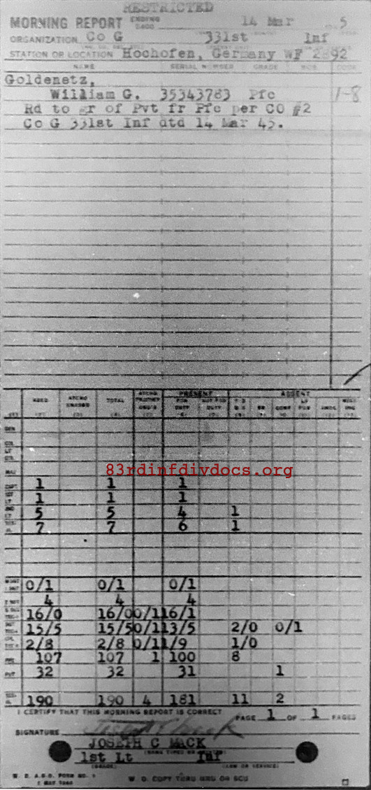Morning report G/331 for March 14, 1945