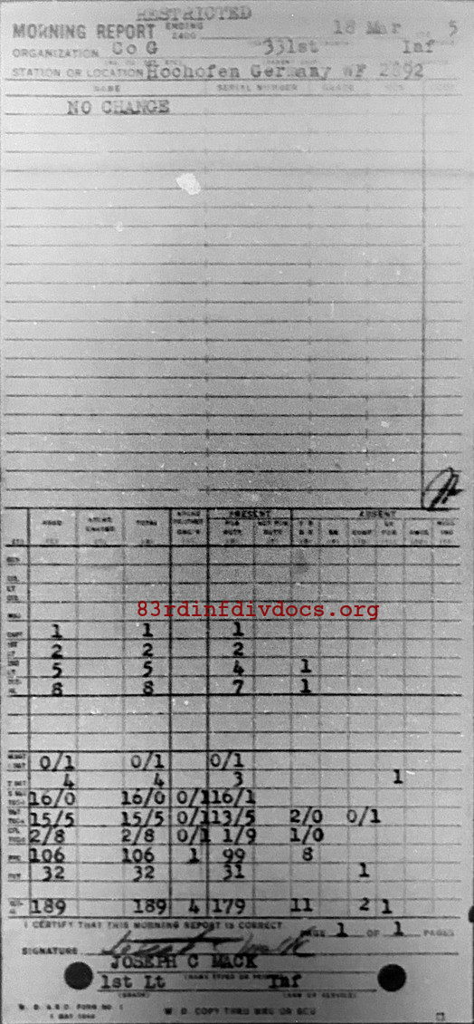 Morning report G/331 for March 18, 1945