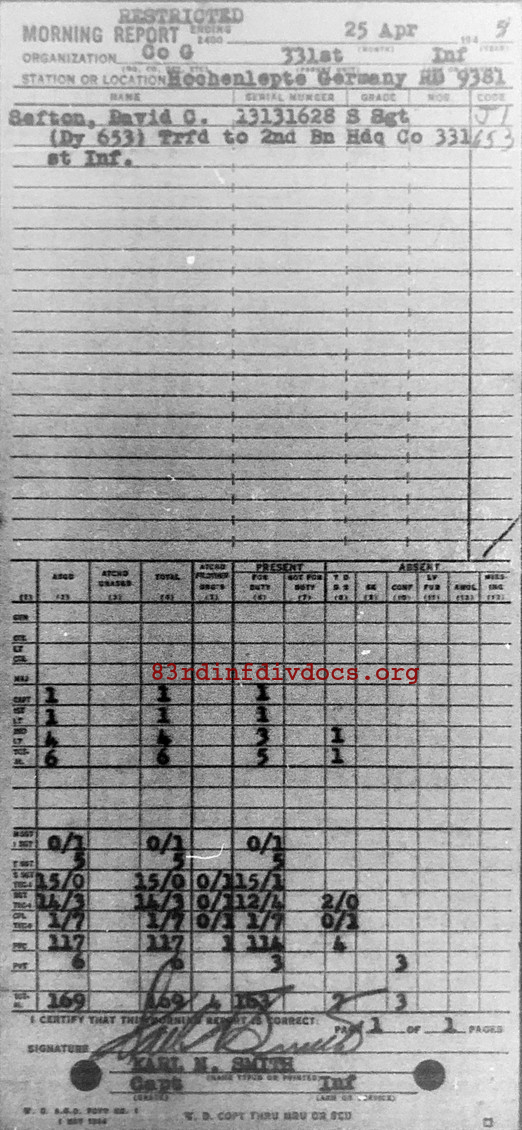 Morning report G/331 for April 25, 1945