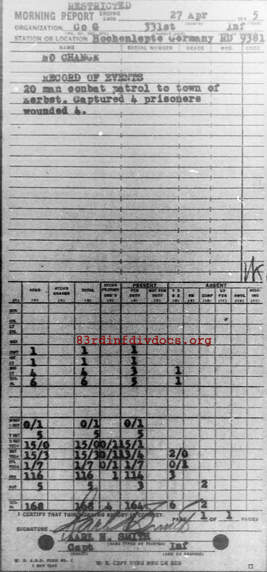 Morning report G/331 for April 27, 1945