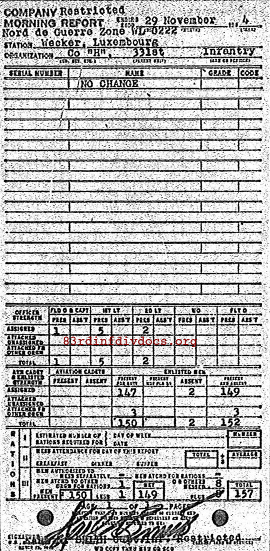 Morning report H/331 for November 29, 1944
