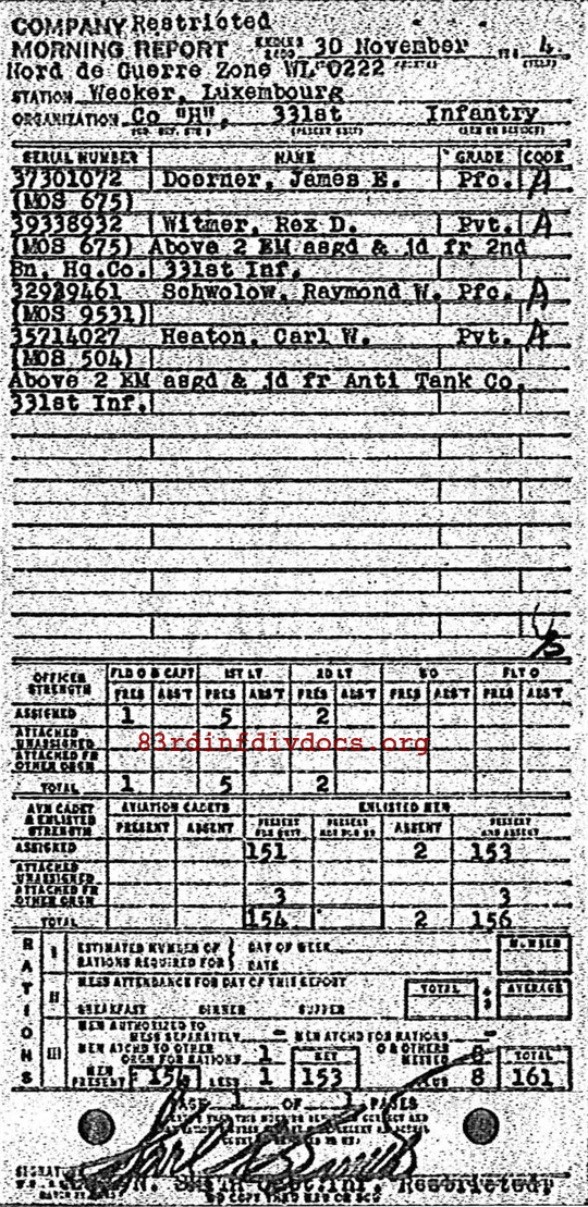 Morning report H/331 for November 30, 1944