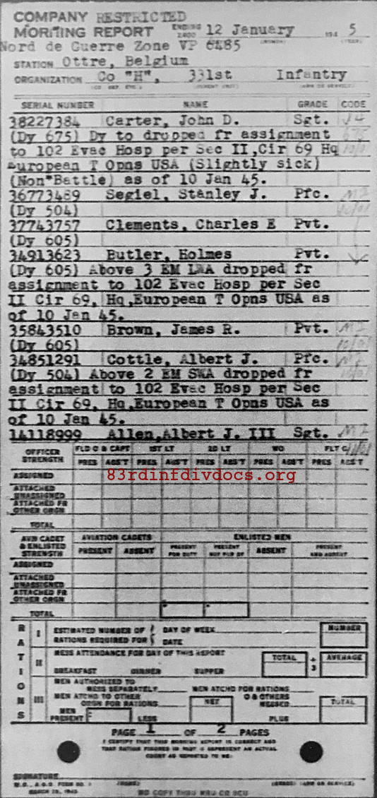 Morning report H/331 for January 12, 1945