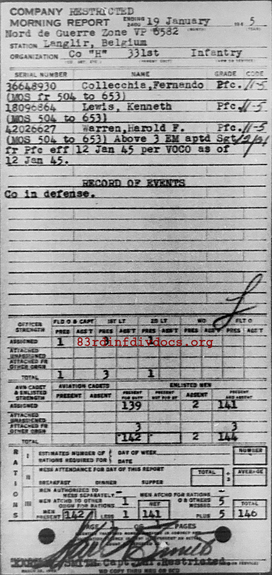 Morning report H/331 for January 19, 1945