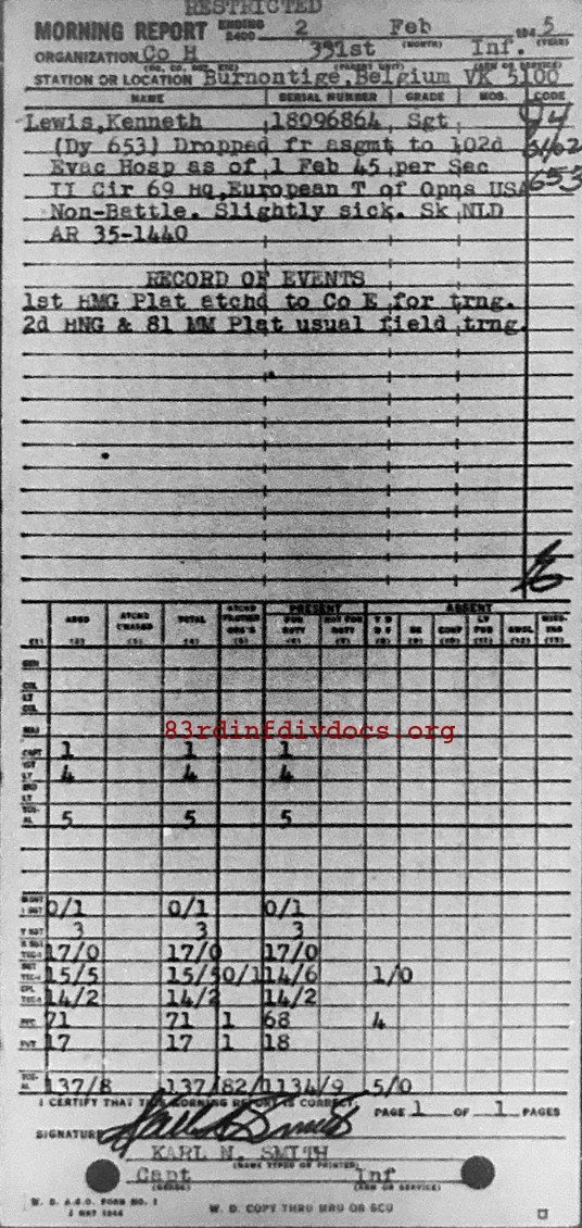 Morning report H/331 for February 2, 1945
