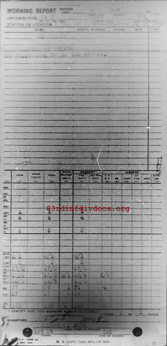 Morning report H/331 for March 2, 1945