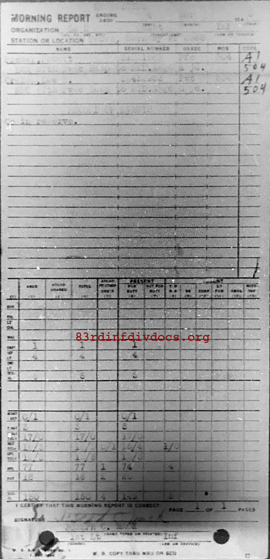 Morning report H/331 for March 4, 1945