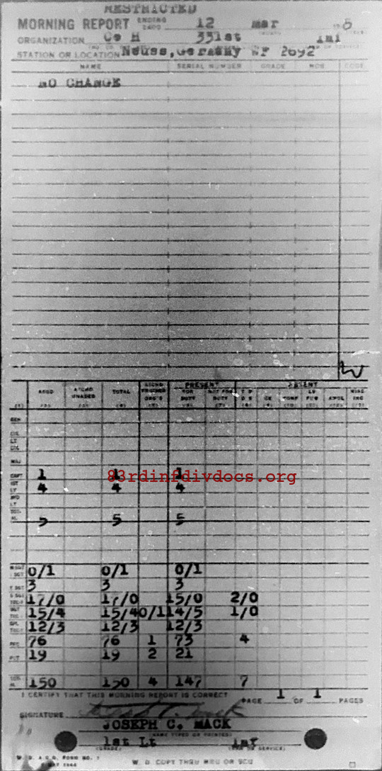 Morning report H/331 for March 12, 1945