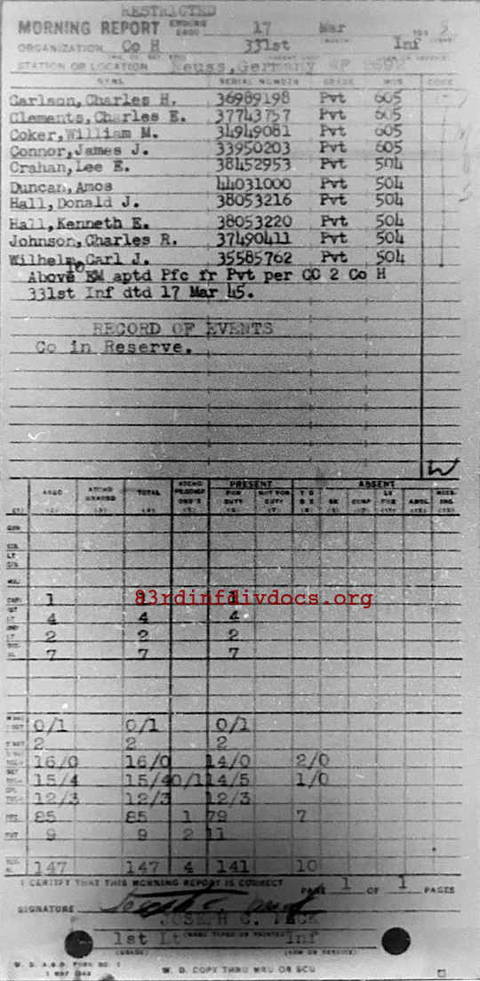 Morning report H/331 for March 17, 1945