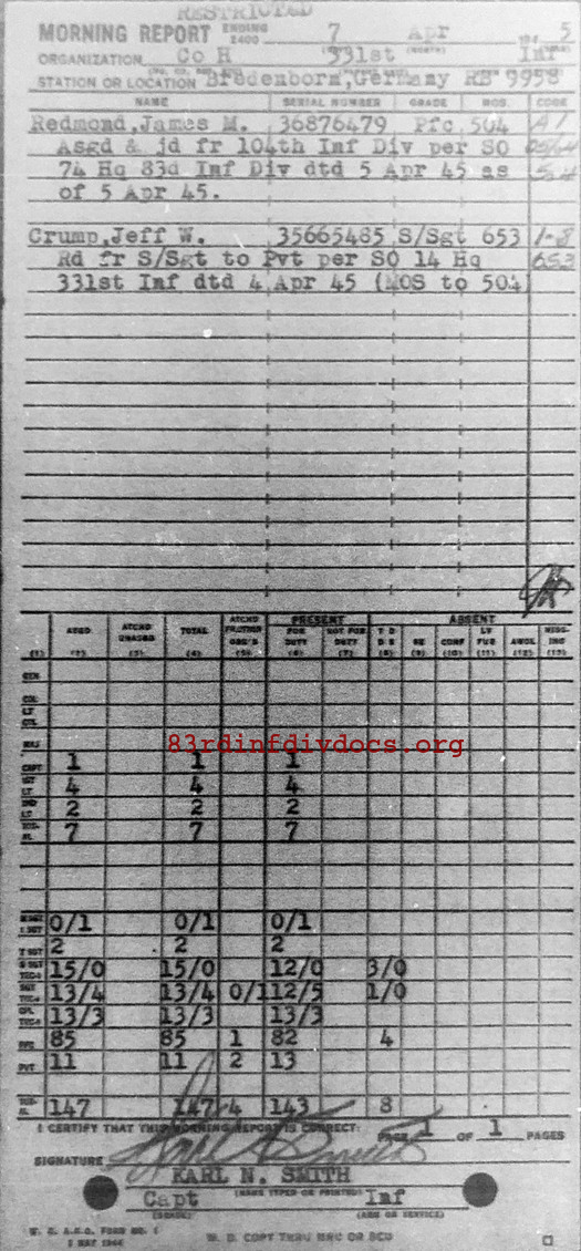 Morning report H/331 for April 7, 1945