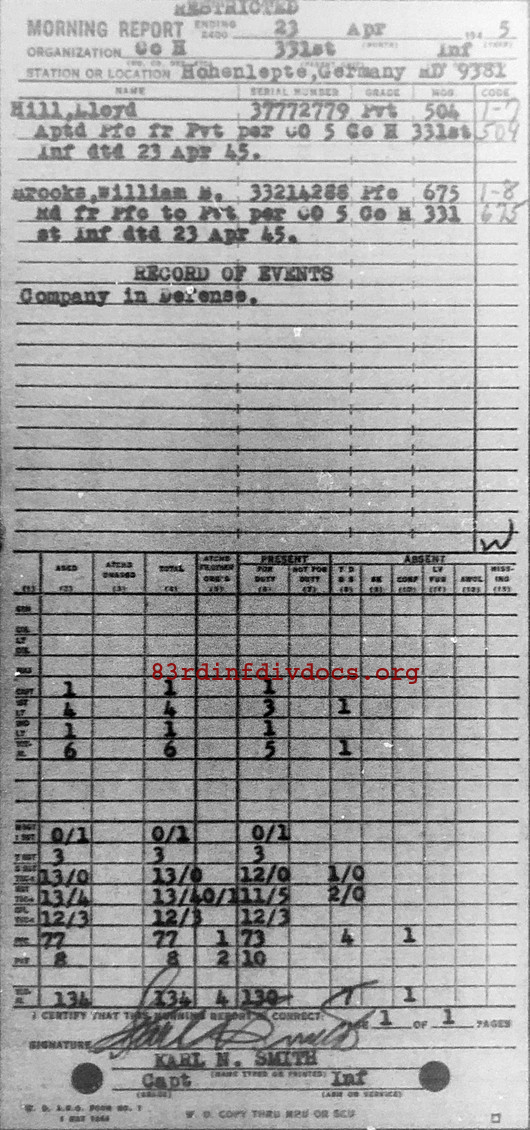 Morning report H/331 for April 23, 1945