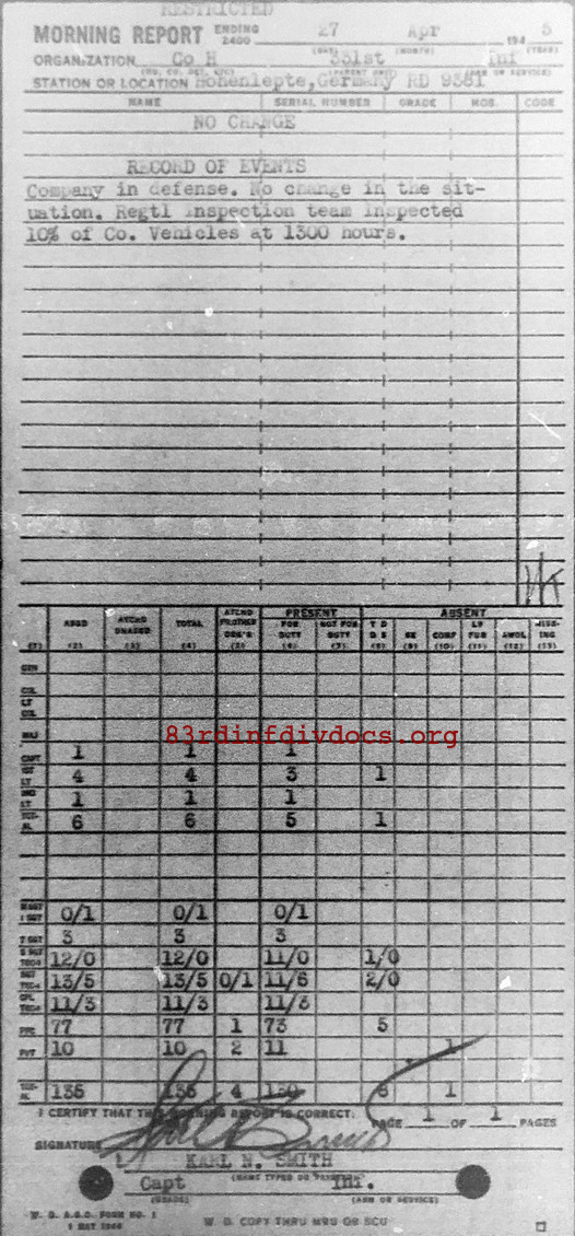 Morning report H/331 for April 27, 1945