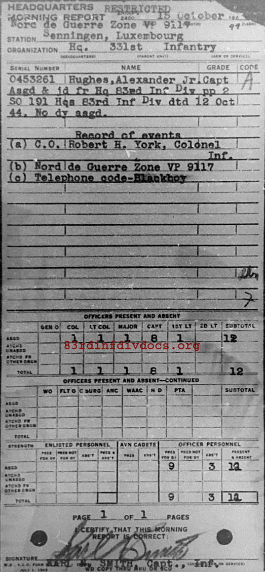 (a) C.O. Robert H York, Colonel (b) Nord de Guerre Zone VP 9117 (c) Telephone code-Blackboy