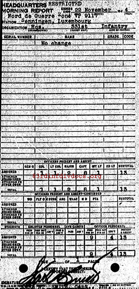 Morning report HQ/331 for November 22, 1944