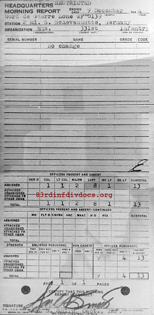Morning report HQ/331 for December 9, 1944