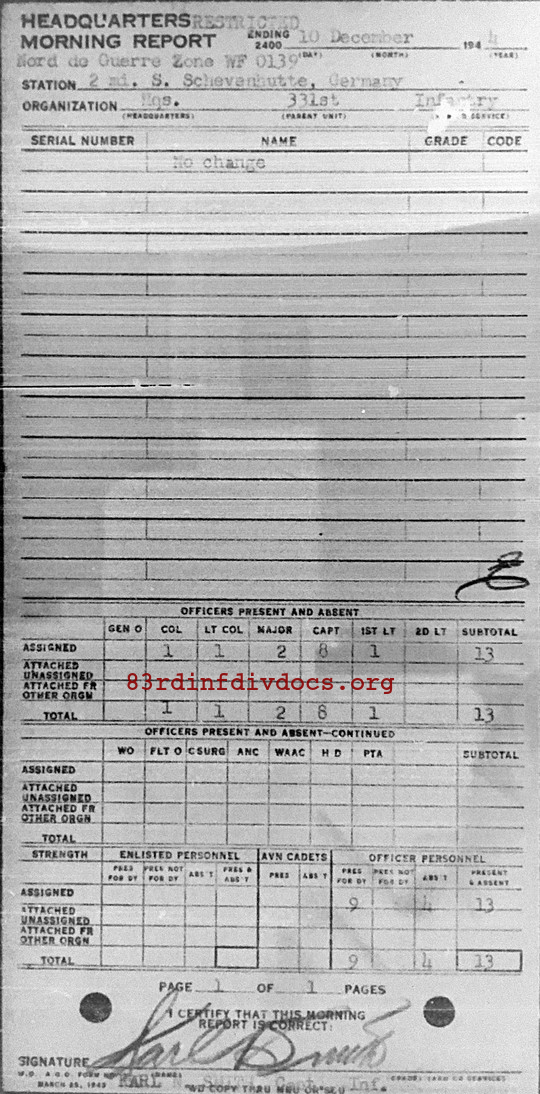 Morning report HQ/331 for December 10, 1944