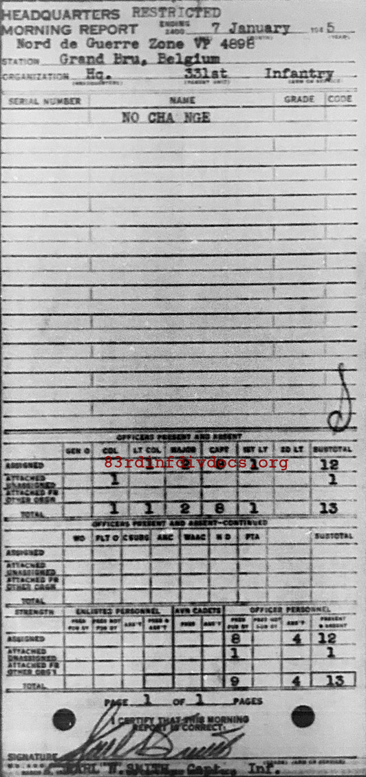 Morning report HQ/331 for January 7, 1945