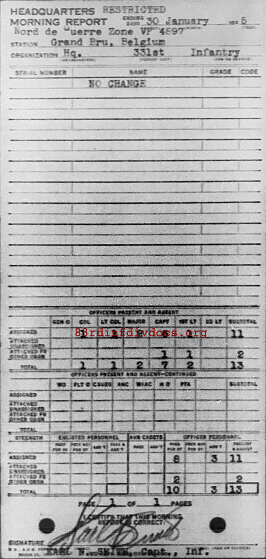 Morning report HQ/331 for January 30, 1945