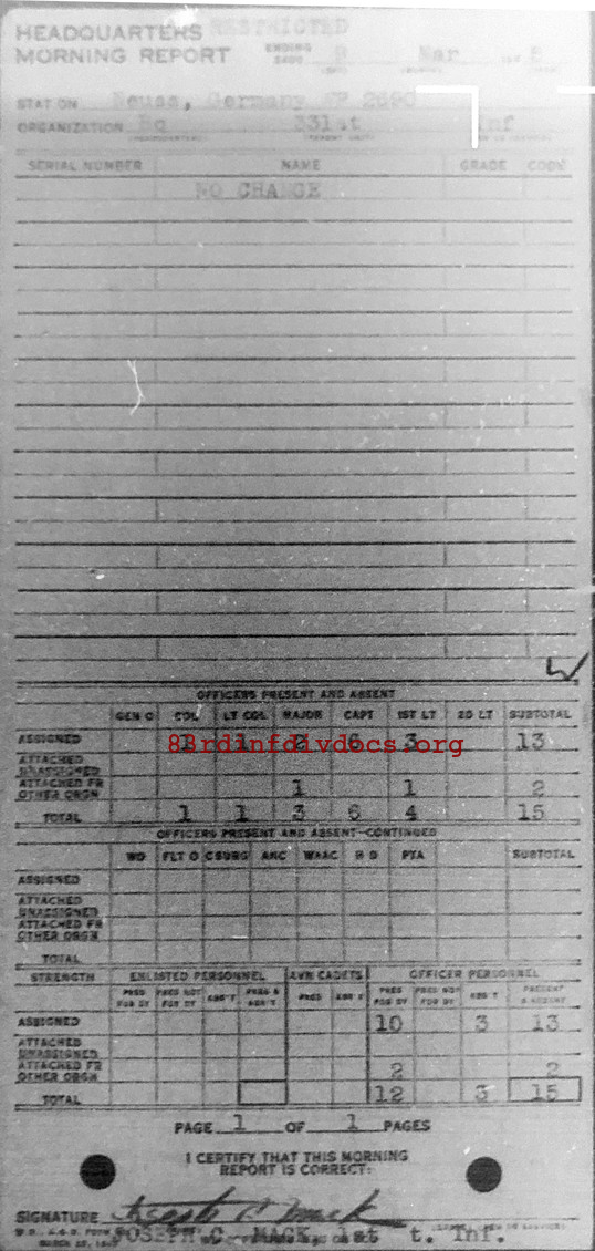 Morning report HQ/331 for March 9, 1945