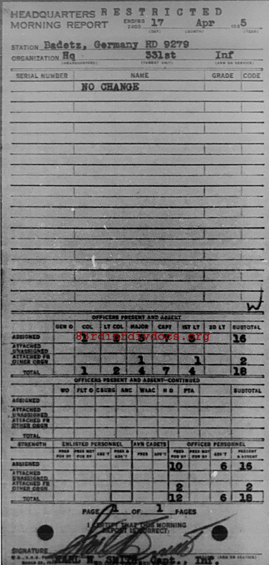 Morning report HQ/331 for April 17, 1945