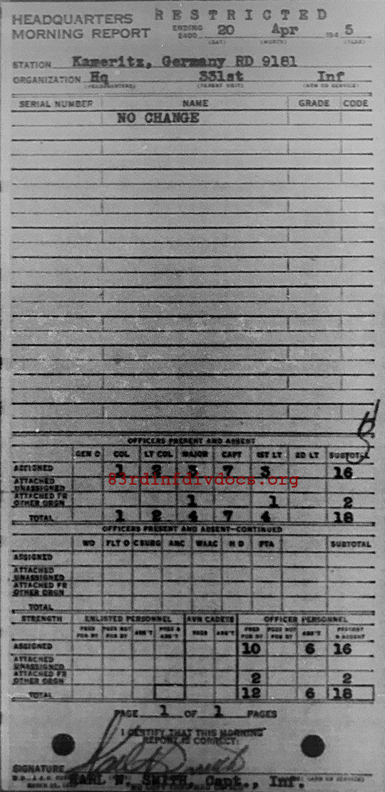 Morning report HQ/331 for April 20, 1945